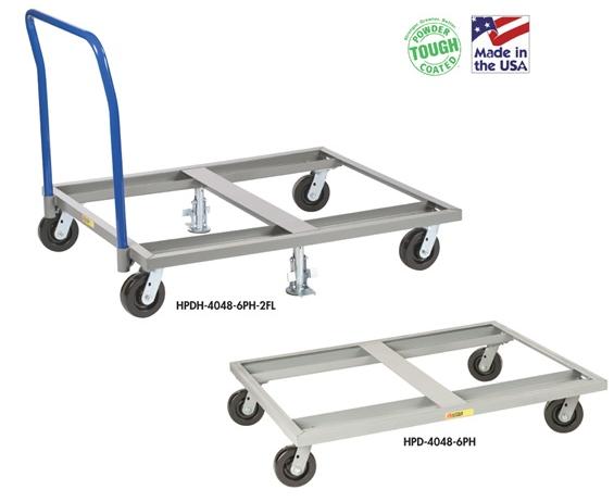 Has 4 swivel casters with non-marking 6" x 2" phenolic wheels and has a 3600-lbs. capacity. Welded steel construction for durability and strength. Ships set up and ready for immediate use. Double Floor Lock option prevents unwanted movement. Available with 36" wide removable pushbar handle. FOB Shipping Point.